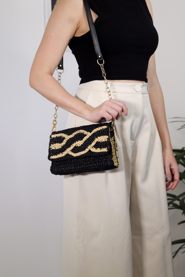 Bolsa Carina– Sofisticação em Crochê com Detalhe em Couro